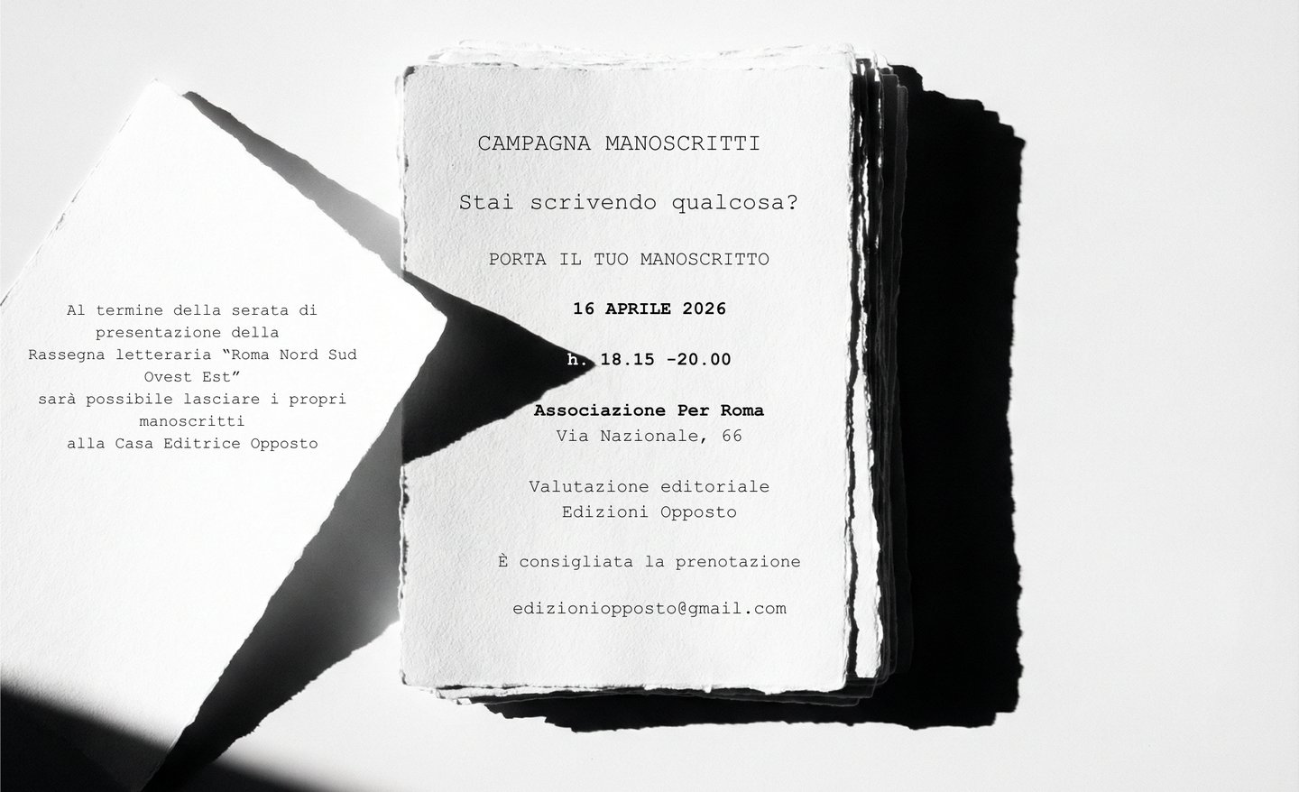 La prenotazione è gradita — scrivici a edizioniopposto@gmail.com o al 334 5634846.