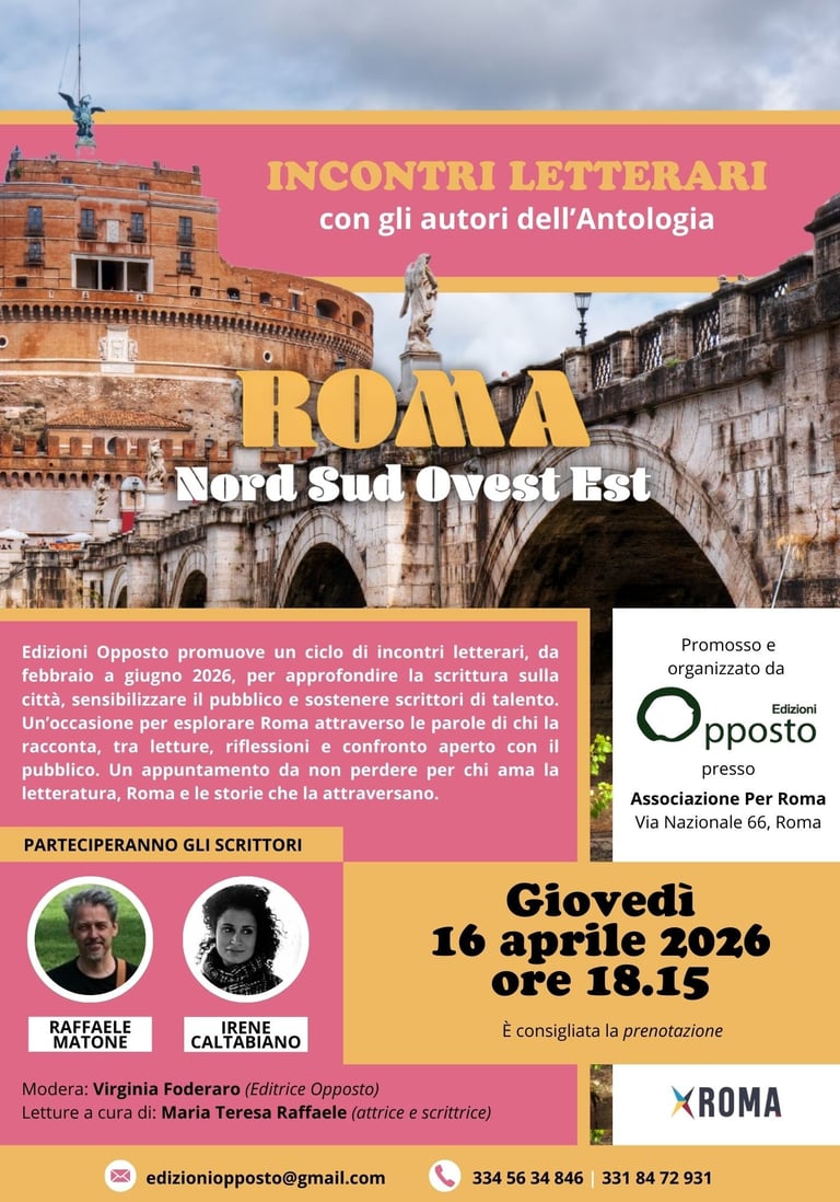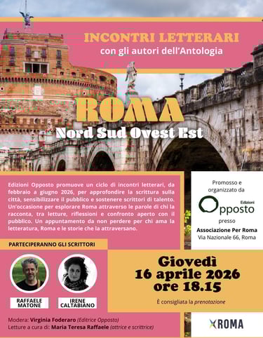 Il 16 aprile alle ore 18.15 torna "Roma Nord Sud Ovest Est", il ciclo di incontri letterari di Edizioni Opposto dedicato alla scrittura sulla città.